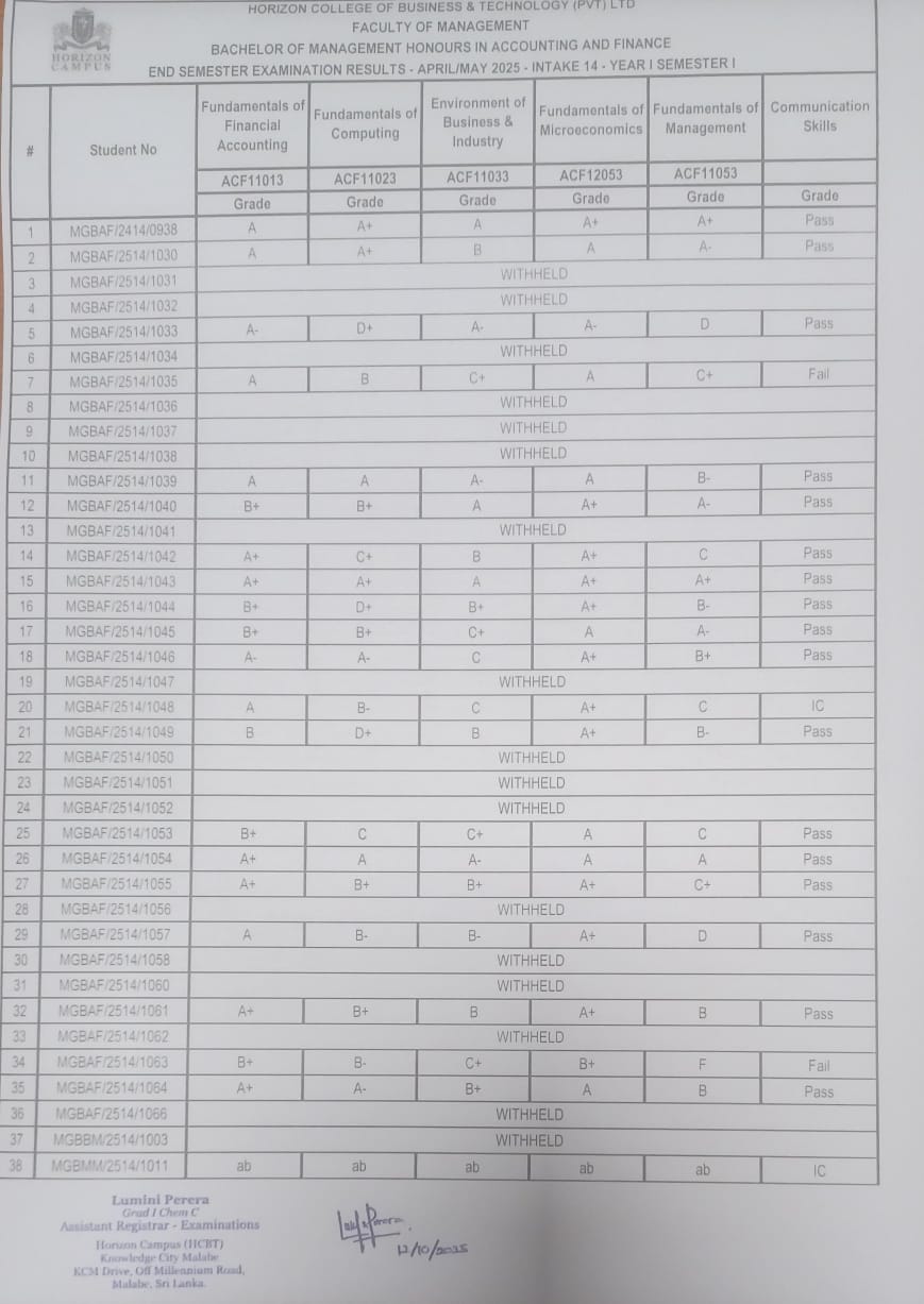 Faculty of Management / MGT Notice Board / Examination Results / Intake 14 Acc. Fin.